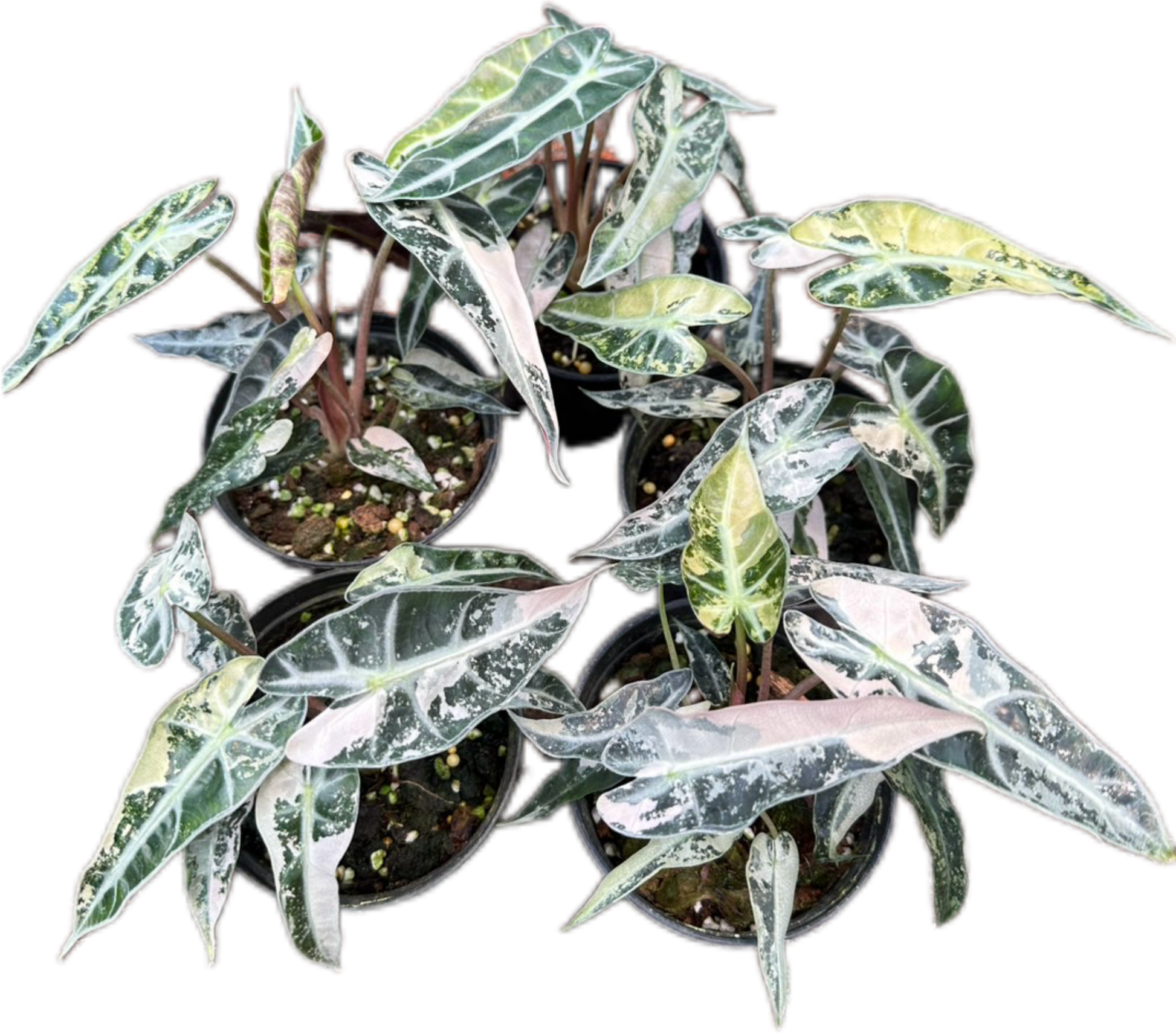 The Alocasia Bambino Variegated is a rare and striking plant with vibrant green leaves splashed with bold yellow variegation. Its compact size and distinct arrowhead foliage make it a standout addition to any indoor plant collection. Perfect for collectors and enthusiasts seeking unique tropical beauty.