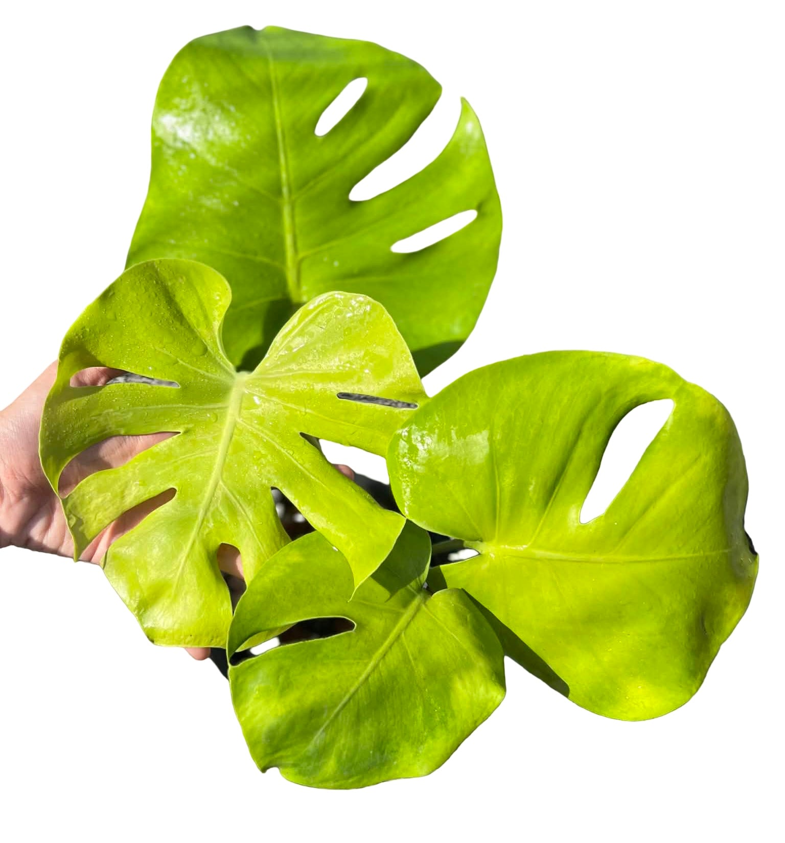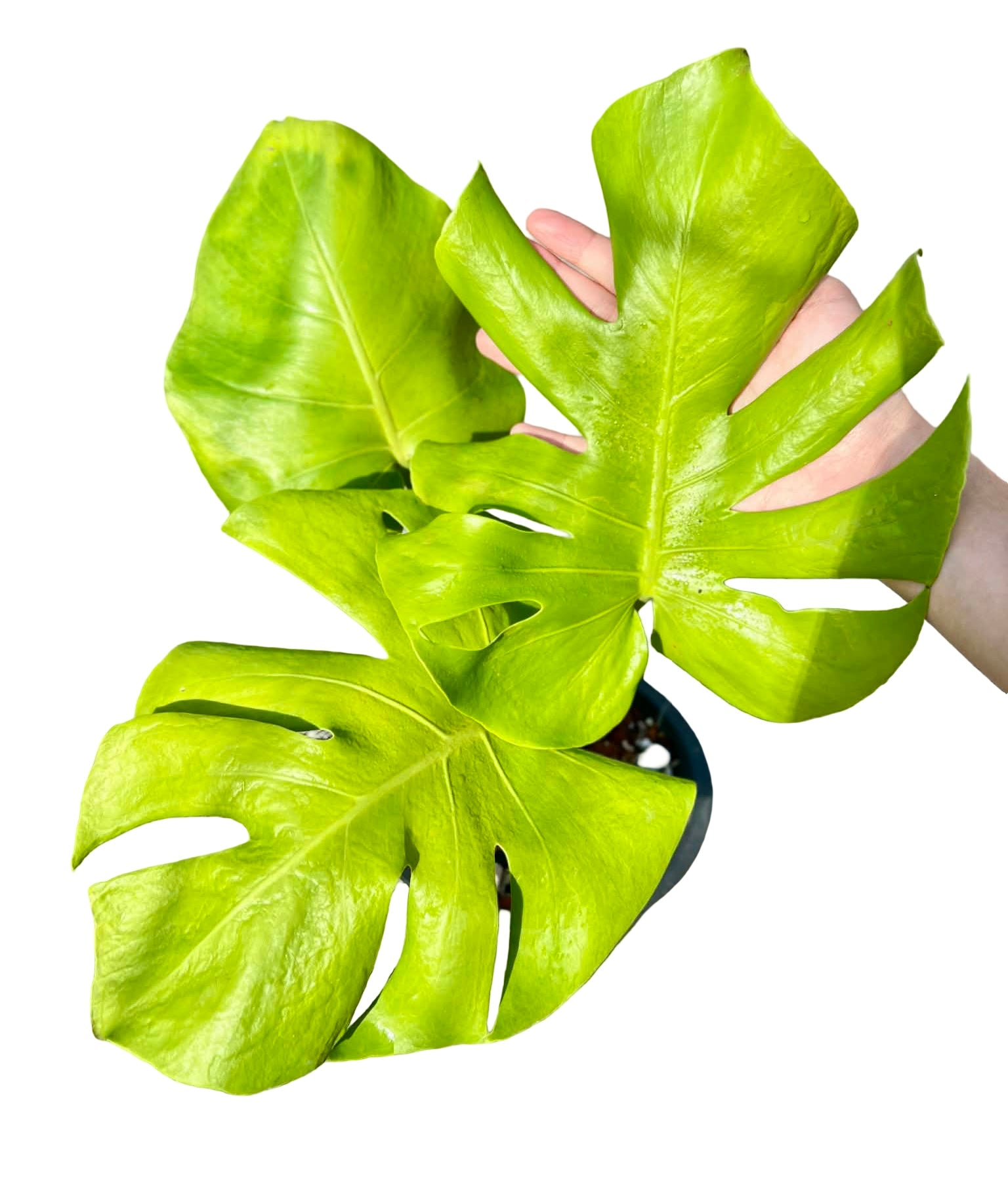 This elegant Monstera Deliciosa “Banana” Variegated is admired for its stunning lime-to-banana yellow foliage that radiates natural brightness. Each leaf features smooth fenestrations and a glossy surface, creating a tropical yet refined look that stands out in any collection.