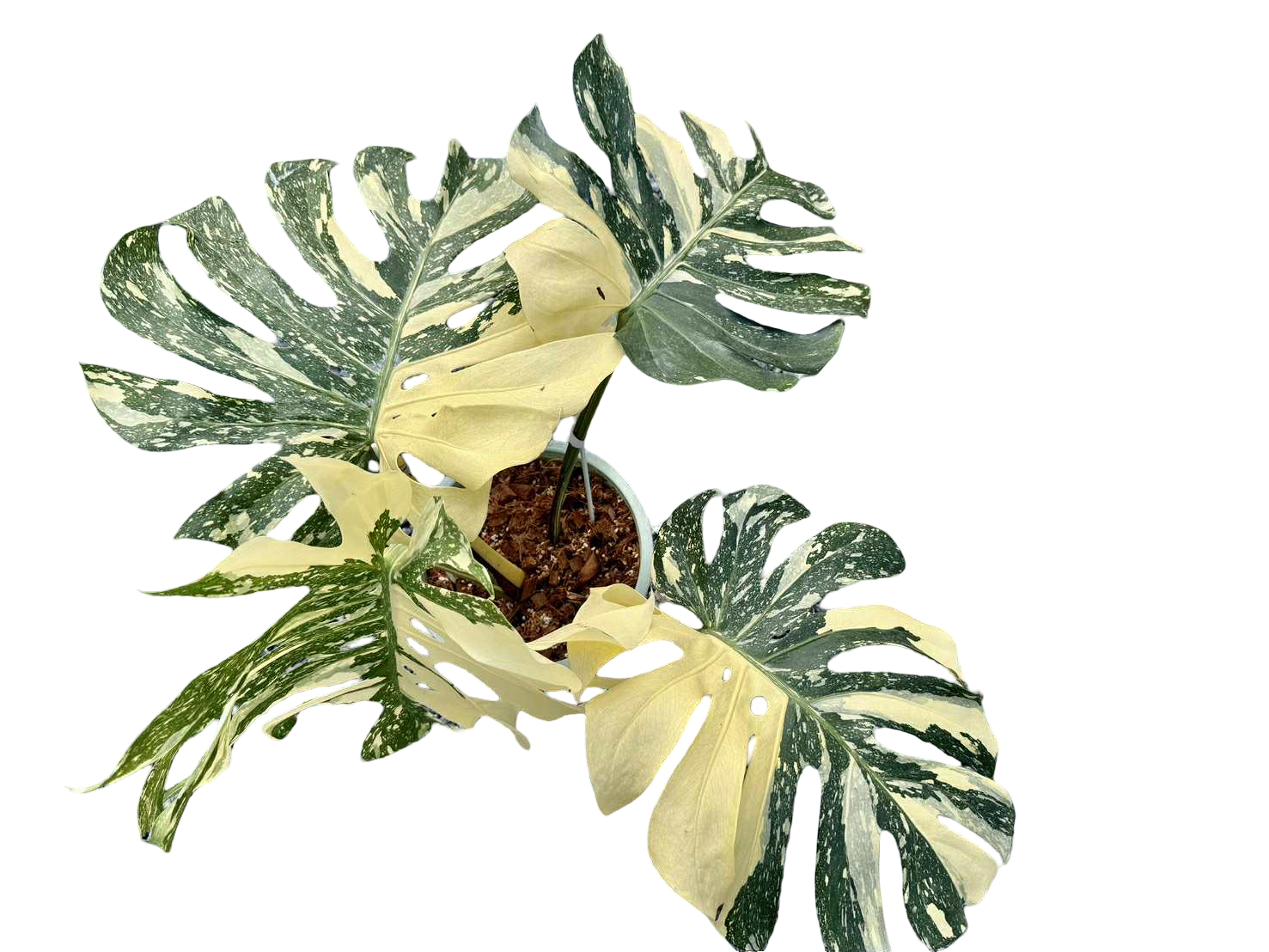 This Monstera Thai Constellation ‘Crème Brûlée’ is a breathtaking collector’s specimen, admired for its rare and luxurious blend of creamy white and soft mint-green marbling. Each leaf displays a rich constellation pattern that resembles delicate brushstrokes of light, giving it a sophisticated and elegant appearance.