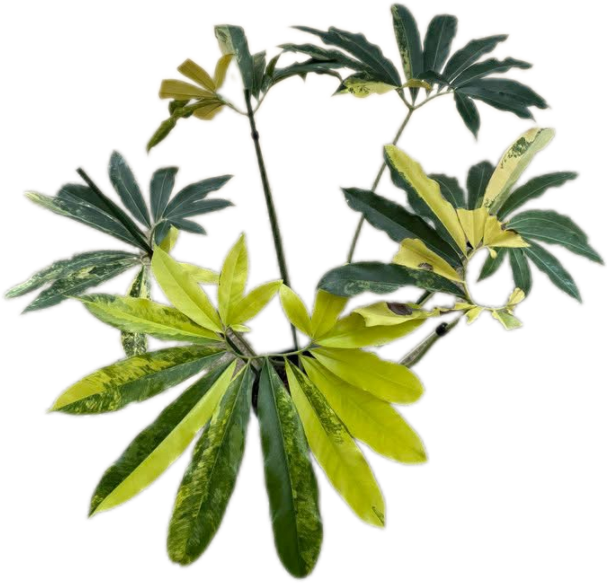 Philodendron Goeldii Variegated, also known as Finger Leaf Philodendron, is a rare and unique tropical aroid prized for its unusual whorled leaf structure and striking variegation in shades of green, yellow, and creamy white. This plant brings a bold and exotic look to any collection, making it highly desirable among rare plant enthusiasts.