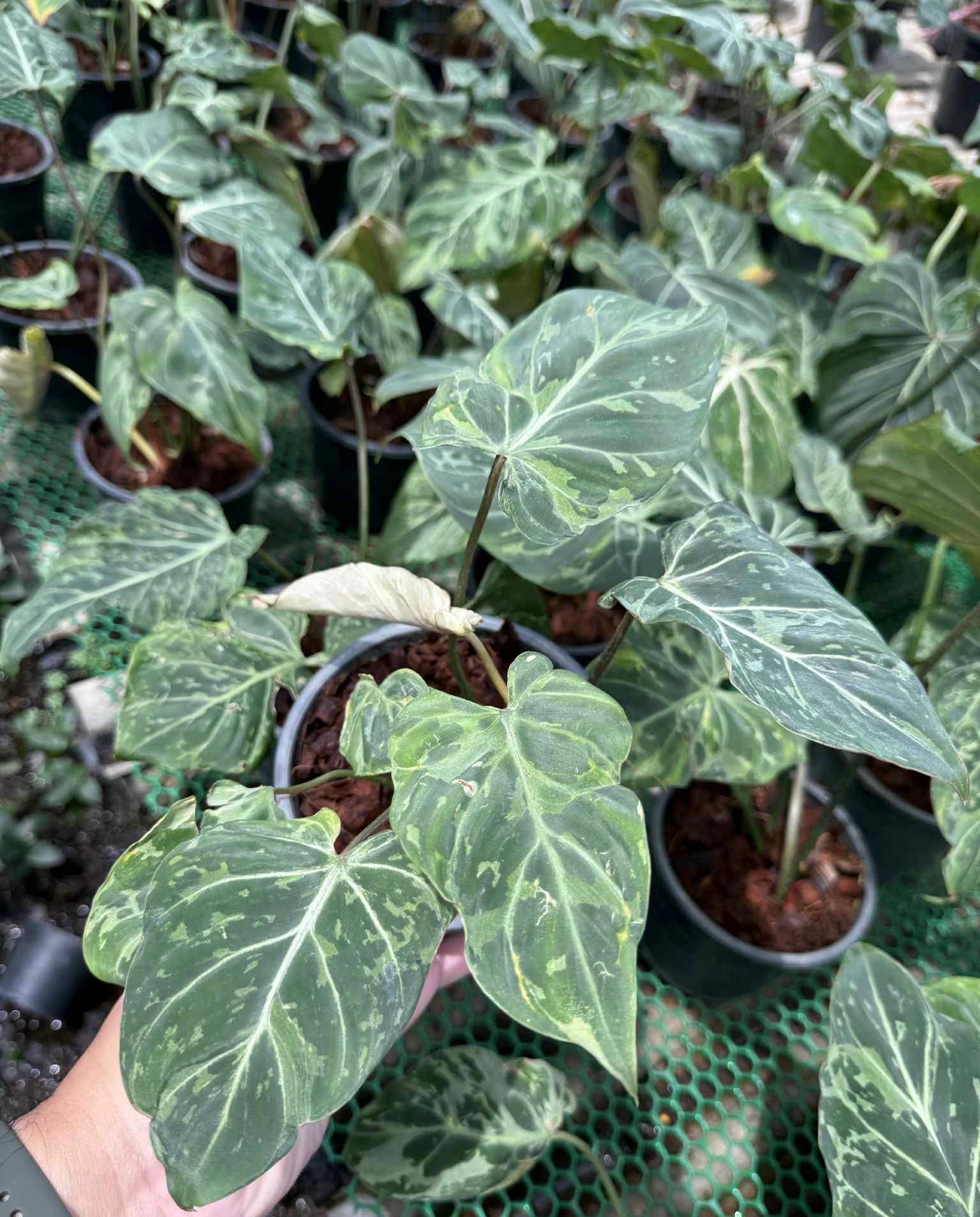 The Philodendron “Snow Leopard” is a rare and eye-catching aroid prized for its dark green foliage with unique silvery-white marbling, resembling the elegant coat of a snow leopard. Its bold variegation makes it a top choice for plant collectors and resellers looking for standout varieties.