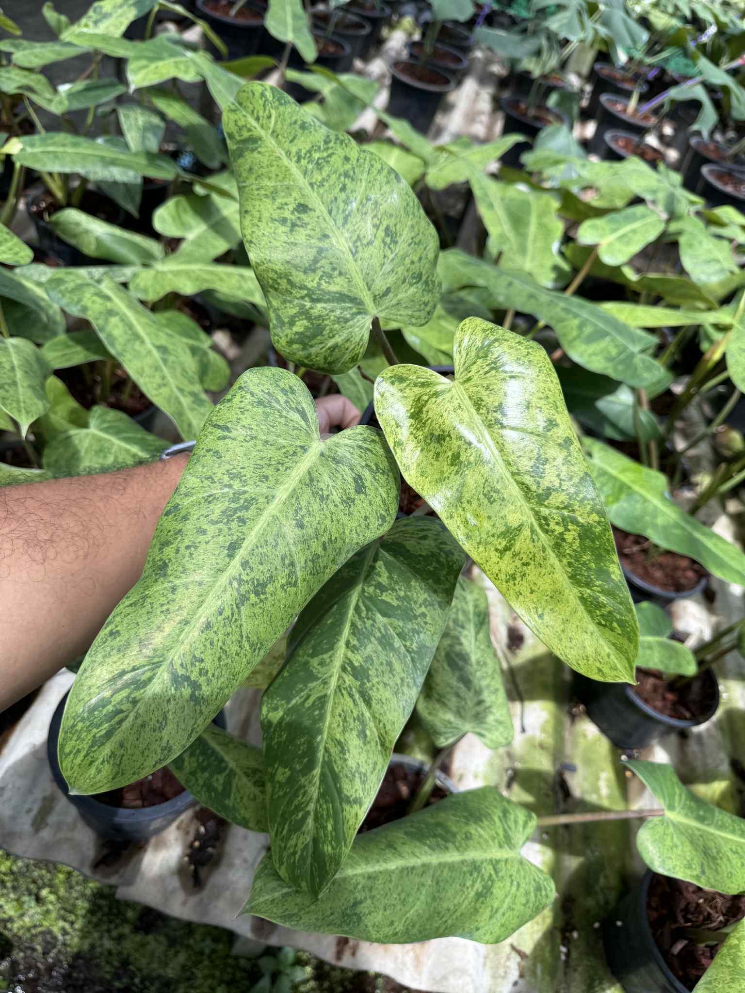 As a climbing philodendron, this variety thrives with support and will reward growers with lush growth and increasingly larger, variegated foliage. Its elegant and unusual coloration makes it a standout in any rare aroid collection.